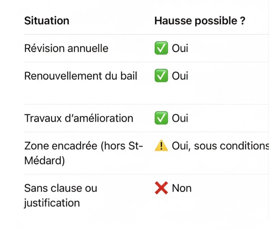 ⚠️ Une augmentation non justifiée ou hors délai peut être refusée par le locataire.